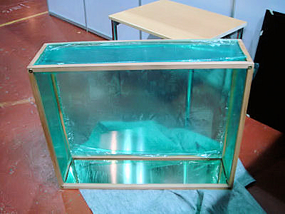 Dioraaman kehys vielä kaikissa suojamuoveissa. Kehys on todella hienoa puusepän työtä.