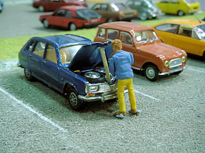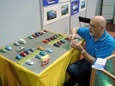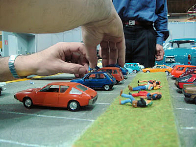 Vaikka kerho oli mukana jo edellisenä vuotena, niin ei ole mitenkään itsestään selvää, että se olisi mukana myös seuraavana vuonna (paitsi ehkä joidenkin mielestä). Tänä vuonna ilmoittautuminen meni hieman pitkäksi, mutta onneksi paikka vielä saatiin. Viime kerrasta opittiin sen verran, että tavoite oli saada mukaan sen verran vapaaehtoisia, että kenenkään ei ole pakko olla paikalla täyttä päivää kumpanakin päivänä. Onneksi vapaaehtoisia löytyi, jopa niin paljon, että joillekin joutui sanomaan, että ensi kerralla sitten. Kiitokset kaikille osallistujille ja myös niille, jotka eivät tällä kertaa päässeet mukaan. Miten sitten valitaan, mitä osastolle laitetaan? Kysymys on paljon vaikeampi kuin mitä ensin voisi ajatella. Oletteko koskaan miettineet messuilla käydessänne, että miksi pysähdytte jollekin osastolla? Toinen juttu sitten on, että miksi kerho osallistuu tähän tapahtumaan. Jos noihin osaa vastata, niin työ helpottuu huomattavasti. Ajatus oli, että lähtökohta on suurin piirtein sama kuin edellisellä kerralla, mutta jotain uutta pitää olla. Kerhon 25-vuotisjuhlavuosi antoi hyvän lähtökohdan. Se, että oliko se esillä riittävästi, on sitten jokaisen siellä käyneen arvioitavissa. Yksi asia, joka kummasti rajoittaa ideointia, on käytettävissä oleva budjetti. Nytkin oli kivoja ideoita (ainakin omasta mielestä :) jotka piti jättää pois, koska ne olisivat maksaneet liikaa. Yksi esimerkki oli kerhon nimellä painetut helium täytteiset ilmapallot. Käynti tämän vuoden Retro Mobile tapahtumassa oli hyvä opintomatka, sillä siellä tuli katseltua osastoja hieman erilaisella silmällä. Itseasiassa auton valinta sai ratkaisun, kun kävimme Atelier Renaultin näyttelyssä, jossa oli esillä Floride 50 vuotta. Jos olette katsoneet Retro-jutun kuvia (Retro Mobile 2009), niin huomasitte ehkä, että auton taustalla oli iso Brigitte Bardon kuva. Siitä syntyi ajatus, että auton takana voisi olla jonkinlainen retrotyyppinen kangas, mutta koska sopivaa sellaista ei etsimisestä huolimatta löytynyt, niin piti ottaa käyttöön suunnitelma B eli Ranskan lippu -variaatio. Senkin suhteen sopivia kankaita metsästettiin Ikeaa myöten (koska se ei saanut maksaa liikaa) mutta yllättäen paras vaihtoehto löytyi Anttilasta. Siellä oli erivärisiä lakanoita ja sattumalta samalla viikolla ne olivat jopa tarjouksessa. Toinen hyvä idea syntyi yhden kuukauden auto -jutun lukemisen jälkeen, sillä siinä oli erilaisia dioraamoja. Koska kerho täyttää 25 vuotta, niin tehdään kuvaelma ensimmäisestä "kokoontumisesta". Se oli Kannelmäen Maxin parkkipaikalla, joten ensimmäinen ajatus oli laittaa parkkipaikan taustaksi Maxin seinää ja käyttää oikein tapahtumasta otettuja valokuvia autenttisuuden luomiseksi, mutta Maxin seinä osoittautui todellisuudessa niin tylsäksi, että se ei ollut hyvä idea. Valokuvien suhteen kävi hieman huonosti, sillä wellu ei onnistunut niitä löytämään ja toisaalta miksi pilata hyvää ajatusta liialla todellisuuden toistamisella. Käytetään mielummin hieman taiteellista vapautta. Onneksi pienoismallien omistaja suhtautui ajatukseen positiivisesti ja kun Timo vielä lupautui tekemään tarvittavan kehyksen, niin saatoin itse keskittyä alustan tekemiseen. Siitä onkin ohessa muutamia tarkentavia kuvia. | |