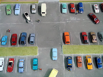 Viimeistelynä parkkiruudut yllättävästi vesivärillä.
