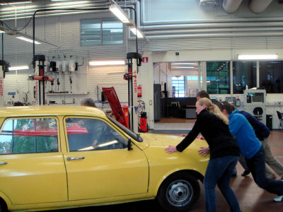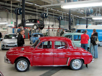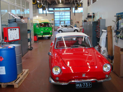 Herttoniemen korjaamohallissa oli tilaa ja sinne olikin koottu suurin määrä harrasteautoja. Hallin koko kertoo,että huoltotoimintaan on panostettu kunnolla, eikä huoltoon tulevien tarvitse jonottaa viikkotolkulla.