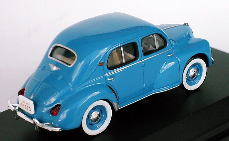 Kyseisessä pienoismallissa ehkä juuri maski erottaa auton parhaiten ranskan mallista, myös etupuskuri on isompaa mallia, mutta takapuskuri näyttää vakiolta, samoin takalasi. Tavallisesta 4CV:stähän löytyy paljon pienoismalleja, joten ikkunan muuttaminen jo olemassa olevaan muottiin olisi kaiketi nostanut mallin kustannukset turhan korkeiksi.