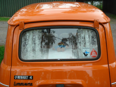 <-- R8 S:n esite oli vastaavan mallin ikkunassa. Hieno yksityiskohta! Alla kesän kauneimmaksi valittu tippa ja takapenkin piknik-korin kuvaan on tullut suorastaan taitellinen vaikutelma, kun viereisen puun heijastus näkyy selvästi lasissa. Luo mukavan retkitunnelman. |