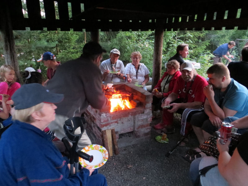 Vaihtoehtona oli myös makkaran grillausta ja loppuillasta laulettiin vielä karaokea ravintolan puolella.