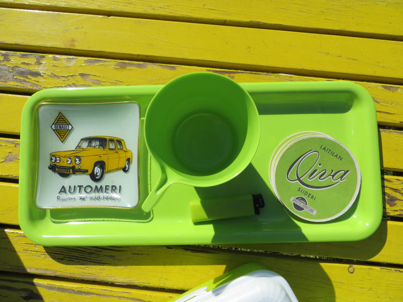 Kaikki hienosti valittuna sävy sävyyn ja tämä vihreä kun sattuu vielä olemaan tämän hetken muotivärejä. Arvatkaapa huviksenne omistajan vaatteiden väri, roksit mukaan lukien.
