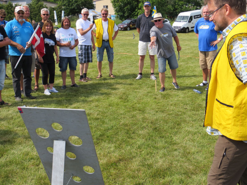 Pohjoismaiden välissä kisassa oli kolme kilpailua, kuvassa ketjun heitto reikiin, joista sai eri määrän pisteitä.