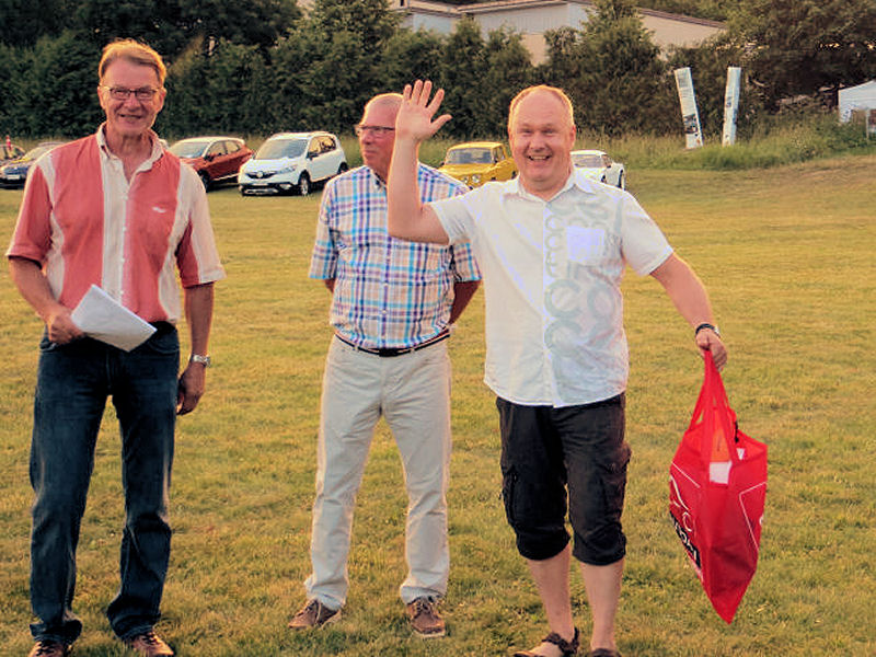 Tietokilpailun kolmas oli Dahle, toisena kuvan iloinen Jussi.
