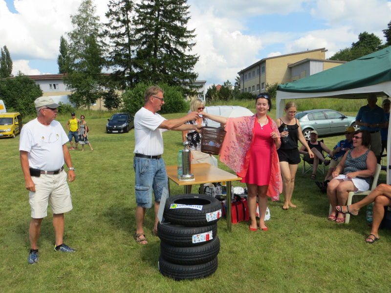 Onnetar ojentaa pääpalkinnon (Michelinin rengassarja) voittavan arvan.