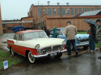 Ranskalainen visiitti järjestettiin tänä vuonna Akaan Viialassa Automobile Club Panhard Dynastia de Finlanden toimesta. Paikkana oli entinen vaneritehdas, jossa Panhard kerholla on omat tilat. Tehdas miljöö oli upea vaikka sää ei oikein suosinut. Vettä tihutti ja ilman henki oli suorastaan kylmä. Onneksi käytettävissä oli sisätila, jossa saattoi olla suojassa.