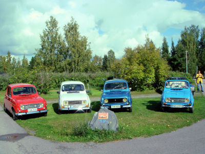 Ohessa kuva erilaisista Renault-sateenvarjoista. Onneksi missään vaiheessa ei kuitenkaan ollut varsinaista rankkasadetta vaan kuurot olivat lyhyitä.Kuva Kari Kitti.