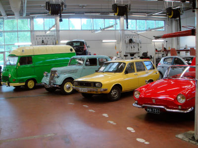 Herttoniemen korjaamohallissa oli tilaa ja sinne olikin koottu suurin määrä harrasteautoja. Hallin koko kertoo,että huoltotoimintaan on panostettu kunnolla, eikä huoltoon tulevien tarvitse jonottaa viikkotolkulla.
