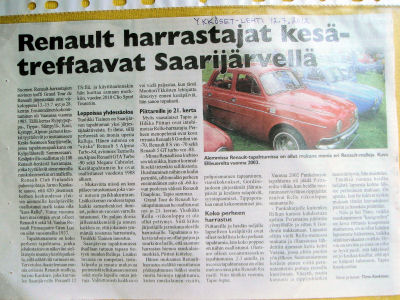 Kerhon kesätapahtuma - Grand Tour de Renault - pidettiin tänä vuonna Saarijärven Summassaaressa. Tapahtuma veti puoleensa yli 120 kerholaista sekä päiväkävijät. Autojakin oli paikalla ihan mukavasti, tosin uudempi kalusto näytti jääneen mökkien pihoihin, eikä ollut suoraan kentällä ihaltavissa.