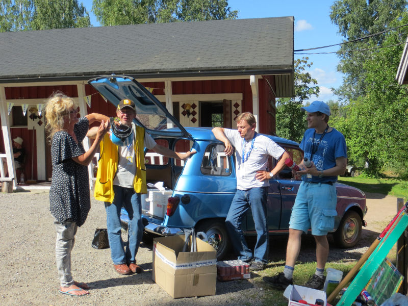 Perinteiseen tapaan pitää kokoontumisessa aina tehdä myös hieman remonttia. Tässä Kari tippa saa "uuden" radion ja sunnuntai aamun kunniaksi sieltä tuli jumalanpalvelus ja virsiä.