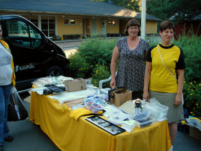 Arpajaiset vetivät hyvin väkeä. Myös palkinnot olivat laadukkaita ja varustettu oikealla tuotemerkillä. Alla arvonnan suorittaneet "onnettaret".