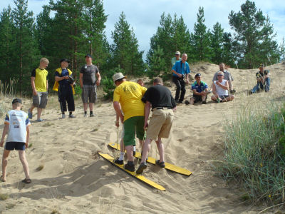 Kyseessä on todellakin aidot Renault-sukset! Mahtoikohan Markulla olla jonkinlainen ennakkoaavistus kilpatehtävistä, sillä yksi tehtävä oli hiihto hiekkadyyneillä ja pohjoisen tiimillä se meni oikein mallikkaasti. |