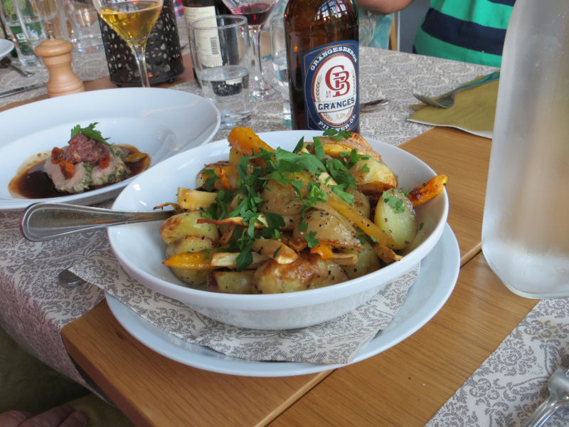 Lisukkeena perunaa ja juureksia, joita santsattiin, sillä olivat todella hyviä.