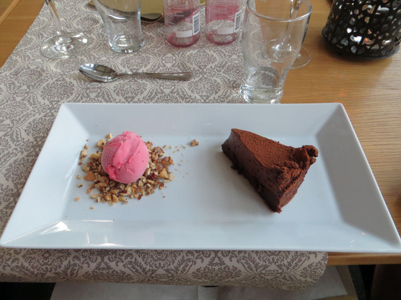 Puheiden ja palkintojen jälkeen nautittiin vielä jälkiruoka, joka täydensi hyvin kokonaisuutta tarjoamalla suussa sulavaa suklaakakkua ja sen vastapainoksi raikasta jäätelöä pähkinäpedillä.